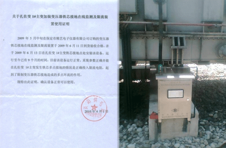 山東省棗莊500KV變電站安裝運行變壓器鐵芯接地在線監(jiān)測及限流裝置