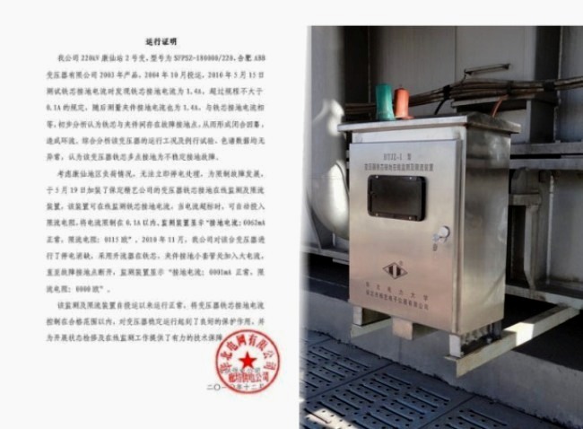 內(nèi)蒙古呼和浩特市黑河220KV變電站安裝運(yùn)行變壓器鐵芯接地在線監(jiān)測及限流裝置